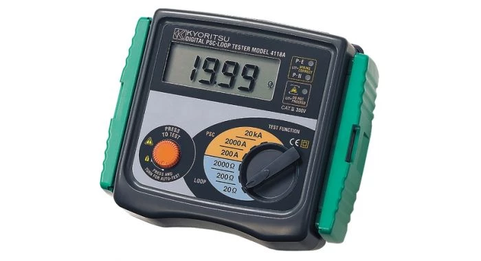 Le Kyoritsu 4118A est un appareil de mesure de l’impédance doté d’un microprocesseur pour des valeurs d’impédance précises avec une résolution de 0,01Ω. Le multimètre affiche immédiatement les courants de court-circuit dans une position séparée. Le compteur indique également si la connexion est correcte.