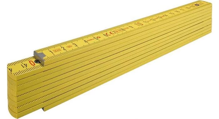 Graduation bilatérale en cm/mm sur les deux bords du mètre pliant.